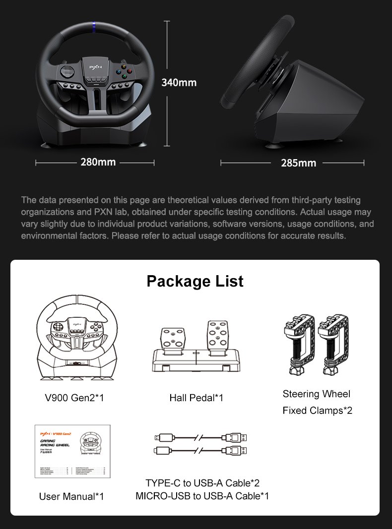 V900 GEN2 Description Specification Support Description PXN V900 Gen2 Gaming Steering Wheel Specification Item weight 4.26 Compatible PC Xbox one Xbox Series X|S PS3 PS4 Color Black Support pxn-v900-gen2-user-manual-v4925_9.pdf